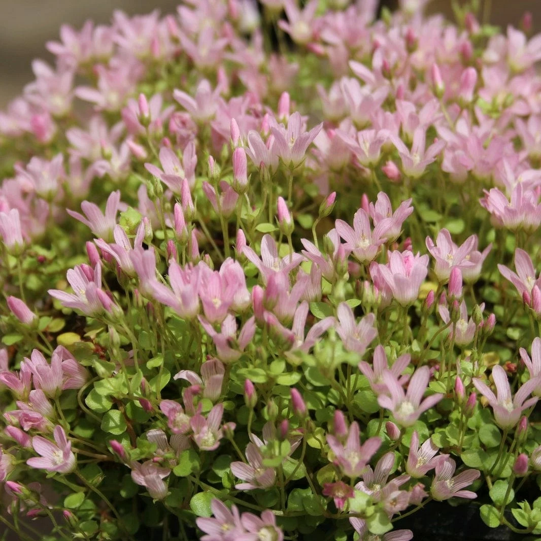- Tiny, fragrant rose pink flowers nestle in a carpet of evergreen foliage