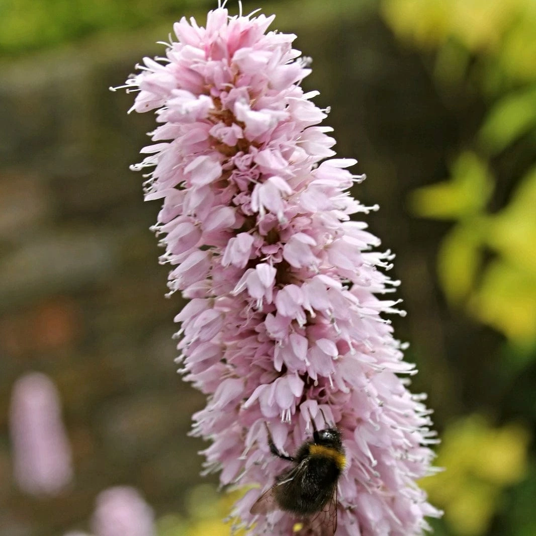 - Dense spikes of little powder pink flowers clustered on upright stems – highly attractive to bees and butterflies!