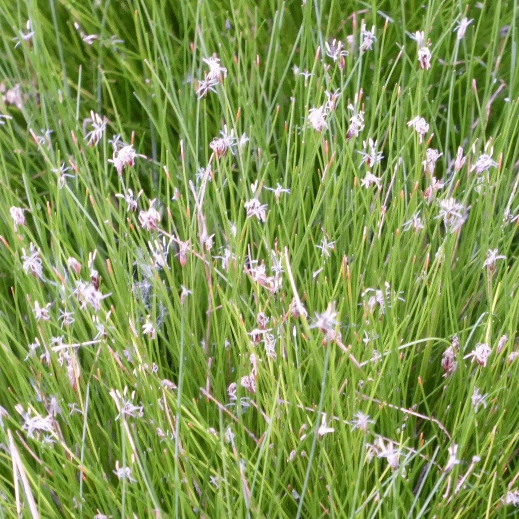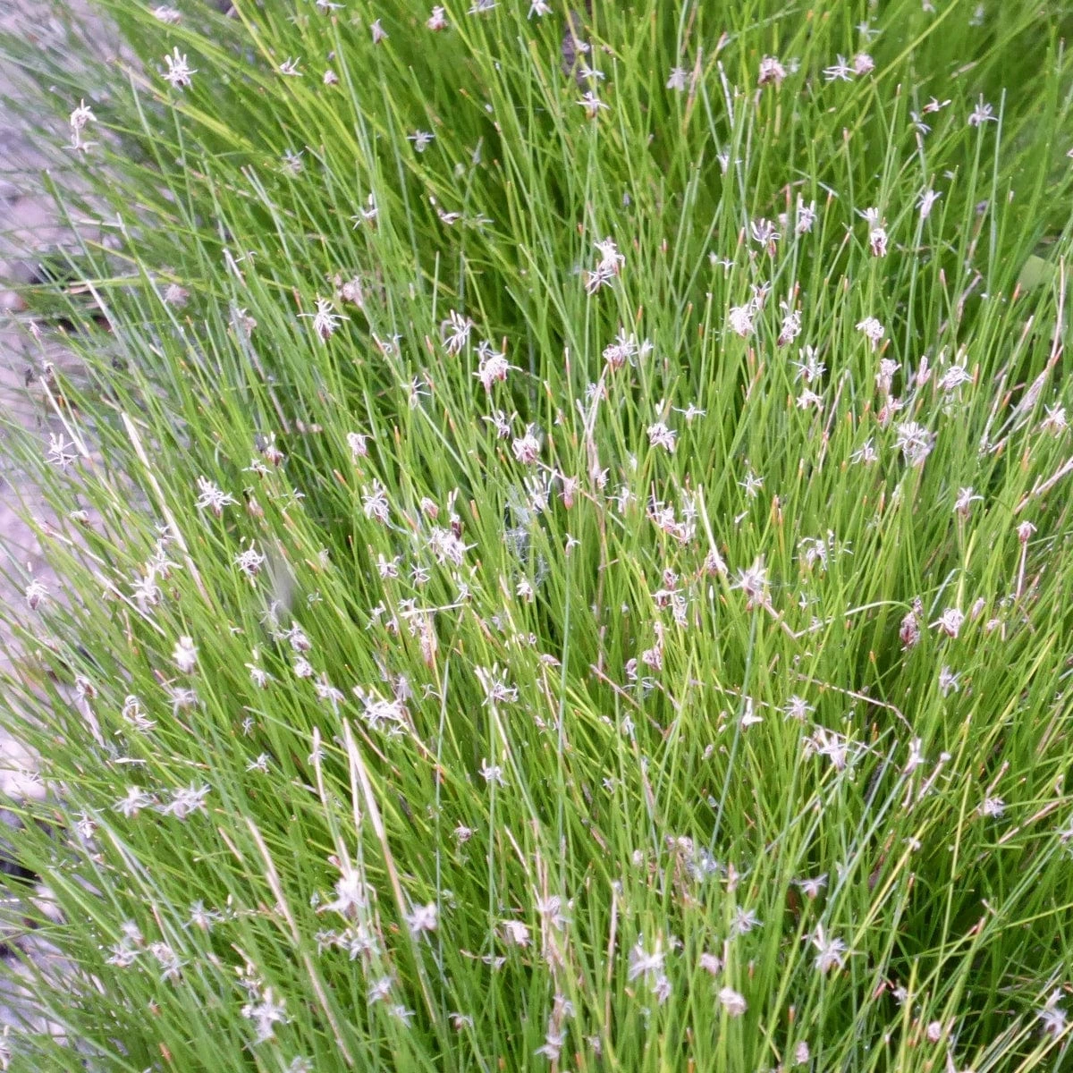 - A slender and compact tufted fine, bright green grass with stems topped by chestnut brown spikelets
