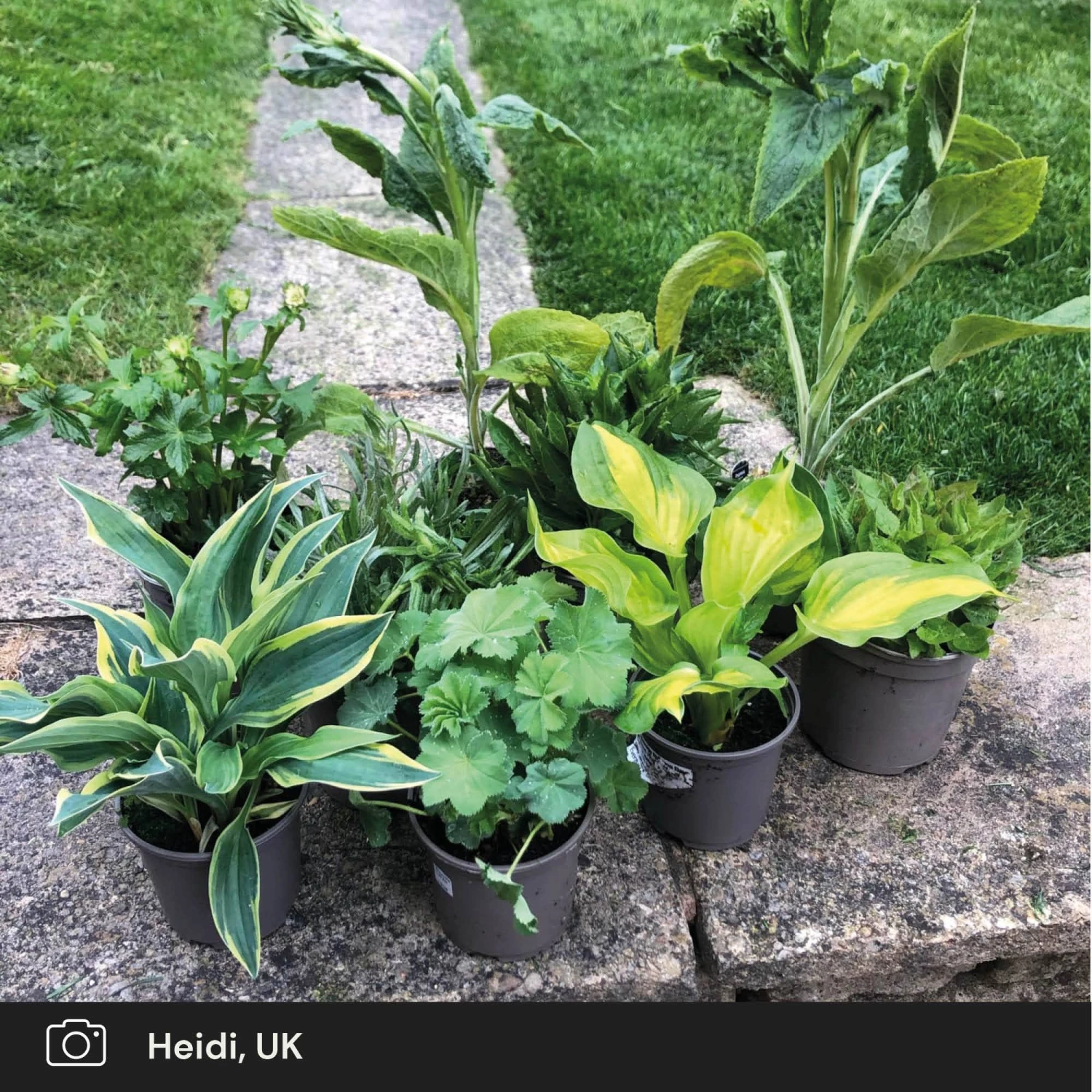 - Our growers will select a beautiful mix of shade-loving plants such as Heucheras, Hostas, Foxgloves, Campanulas and more to provide you with a ready-made shady oasis. Varieties will vary as we will supply the best performing plants of the season